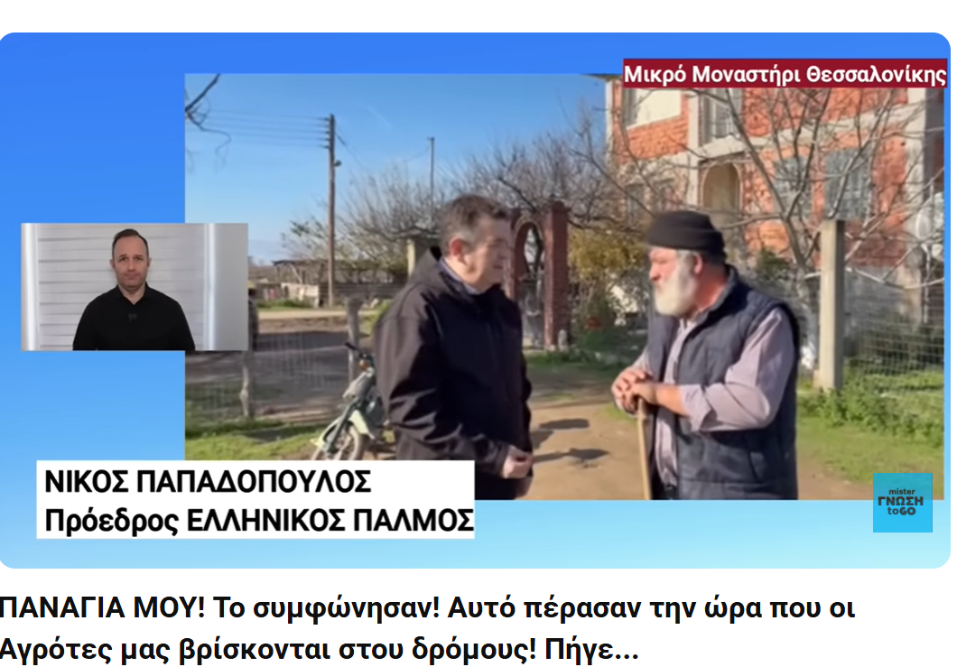 Εκπομπή ειδήσεων με τίτλο “Το συμφώνησαν! Αυτό πέρασαν την ώρα που οι Αγρότες μας βρίσκονται στου δρόμους!”.